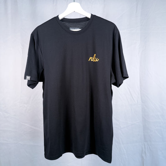 NLU x Levelwear Script Initial Richmond T-shirt | Black w/ Mustard