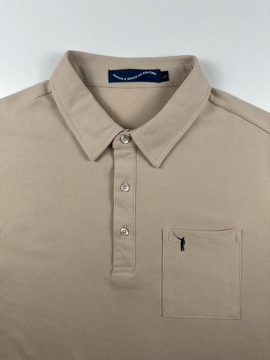 NLU x Angus & Grace Go Golfing Short Sleeve Pocket Polo | Tan