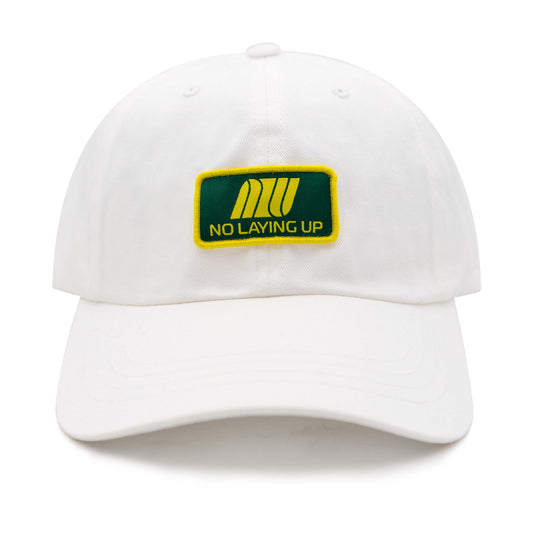 No Laying Up Dad Hat | White w/ Green & Yellow Patch