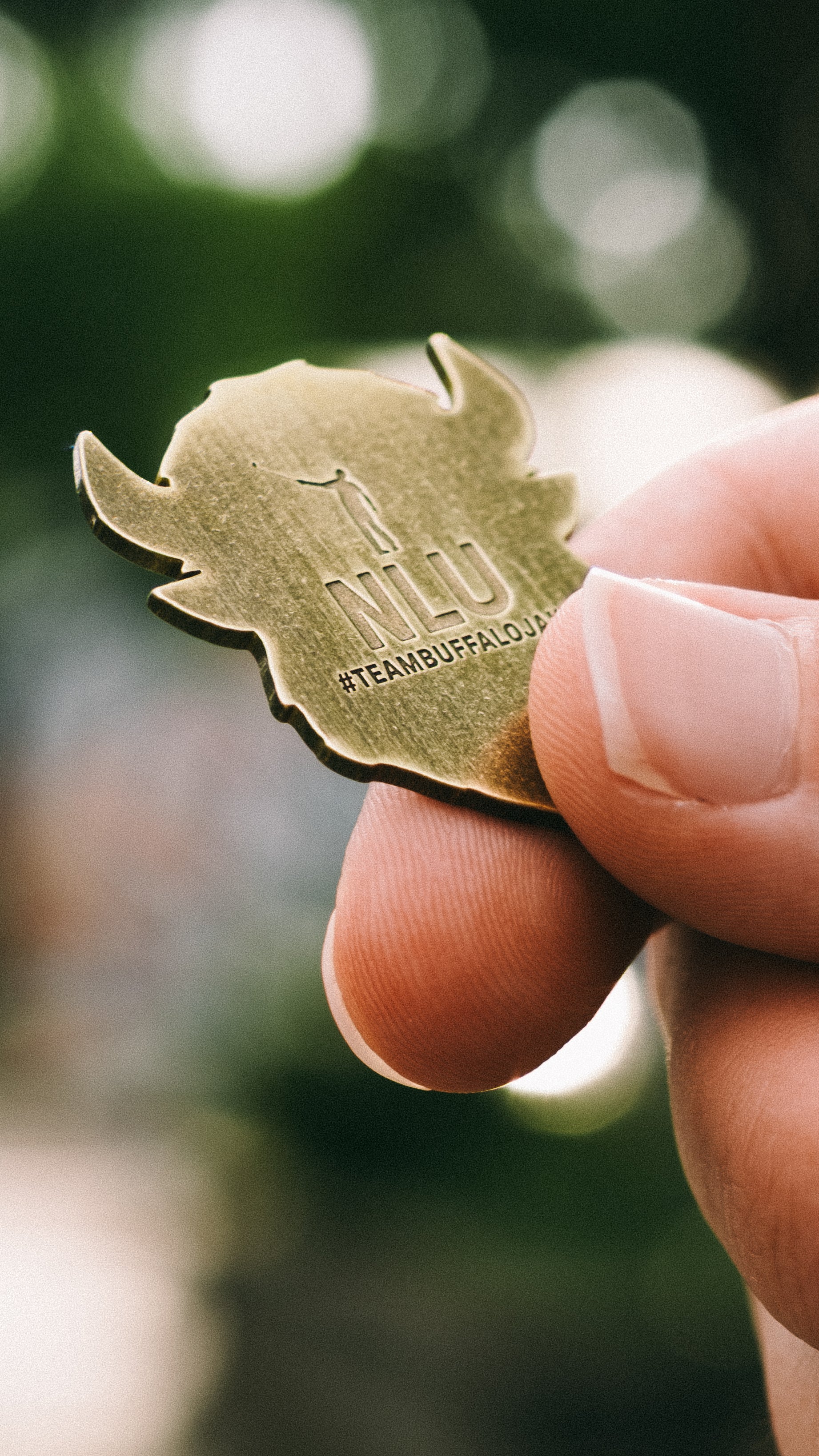 Made from 1/16" thick brass and featuring Jake's Keep Showing Up logo on one side, with some NLU flair on the other to show our support for #TeamBuffaloJake. Comes packaged in a small fabric pouch.