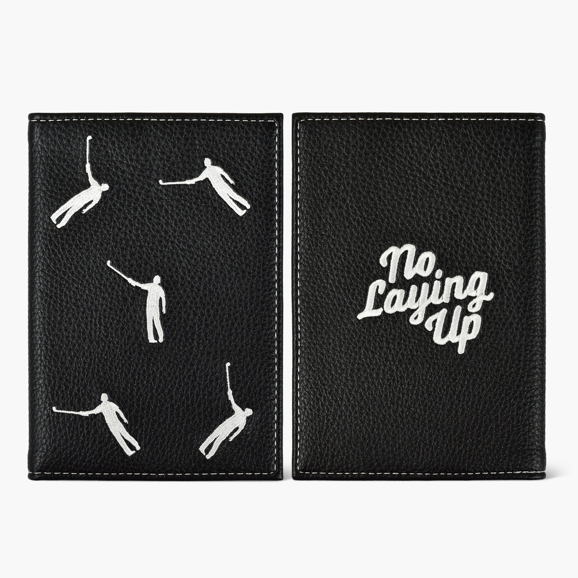 The No Laying Up logo scorecard holder from PRG is in Black with White embroidery. Featuring dancing Wayward Drives on the front and the retro No Laying Up script on the back, these Elite Studio edition scorecard holders feature a place to hold your card and pencil.