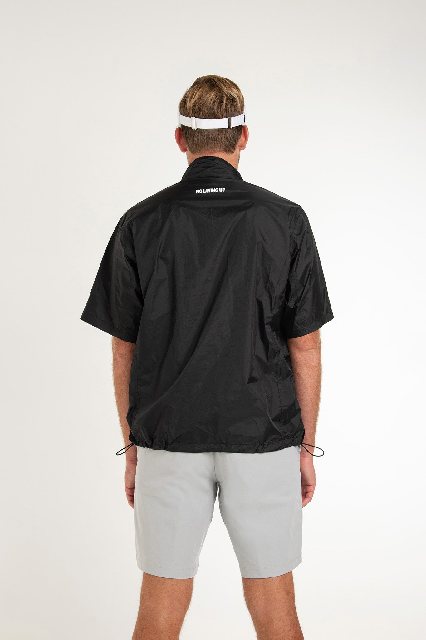 This jacket delivers waterproof and breathable protection for golfers in cool, windy, and rainy conditions. It's a stylish and understated black shell with white No Laying Up accents that makes every day playable and may even shield you from that inevitable #TourSauce backsplash that you may encounter.