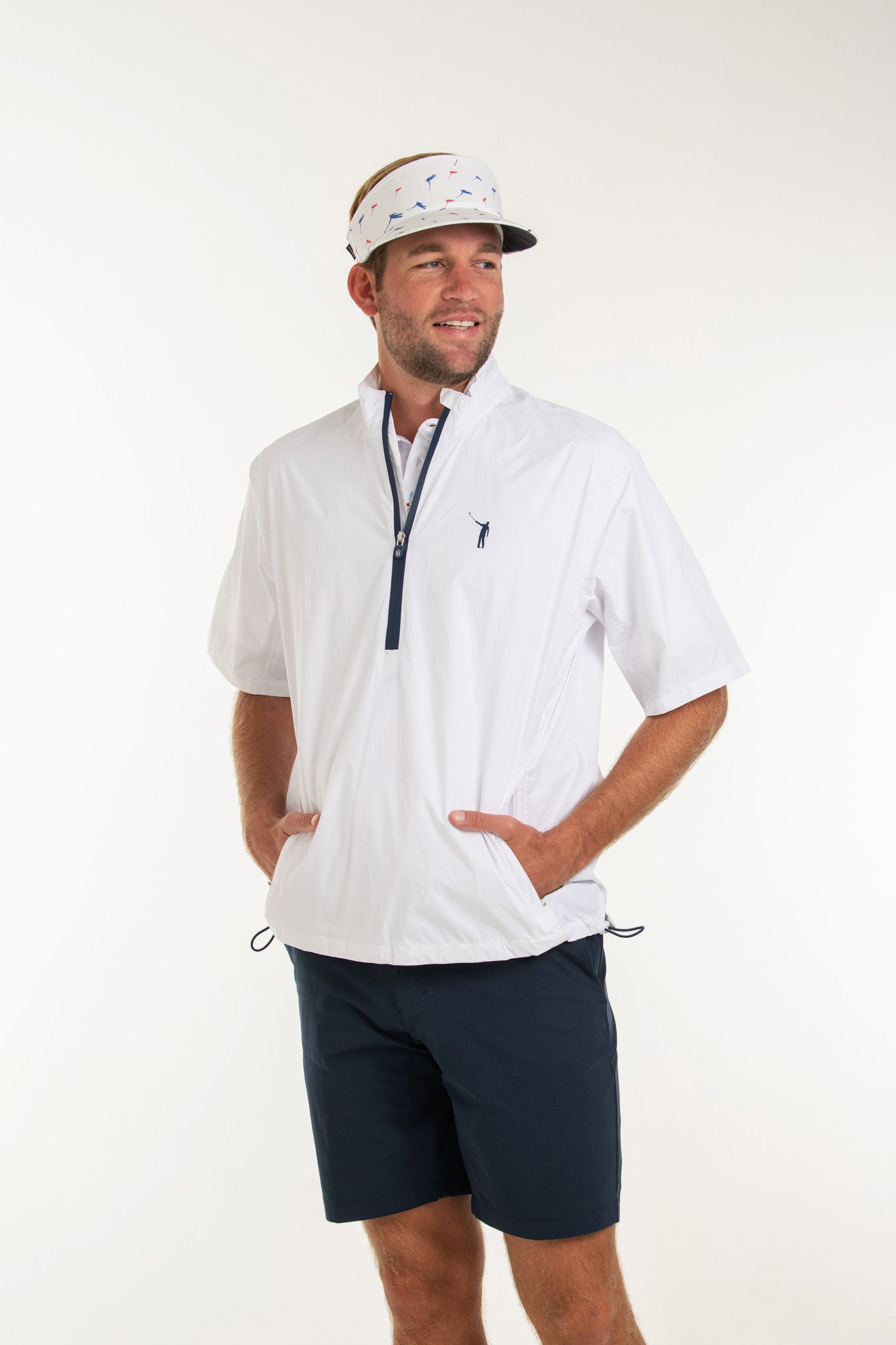 This jacket delivers waterproof and breathable protection for golfers in cool, windy, and rainy conditions. It's a stylish white shell with blue No Laying Up accents that makes every day playable and may even shield you from that inevitable #TourSauce backsplash that you may encounter.