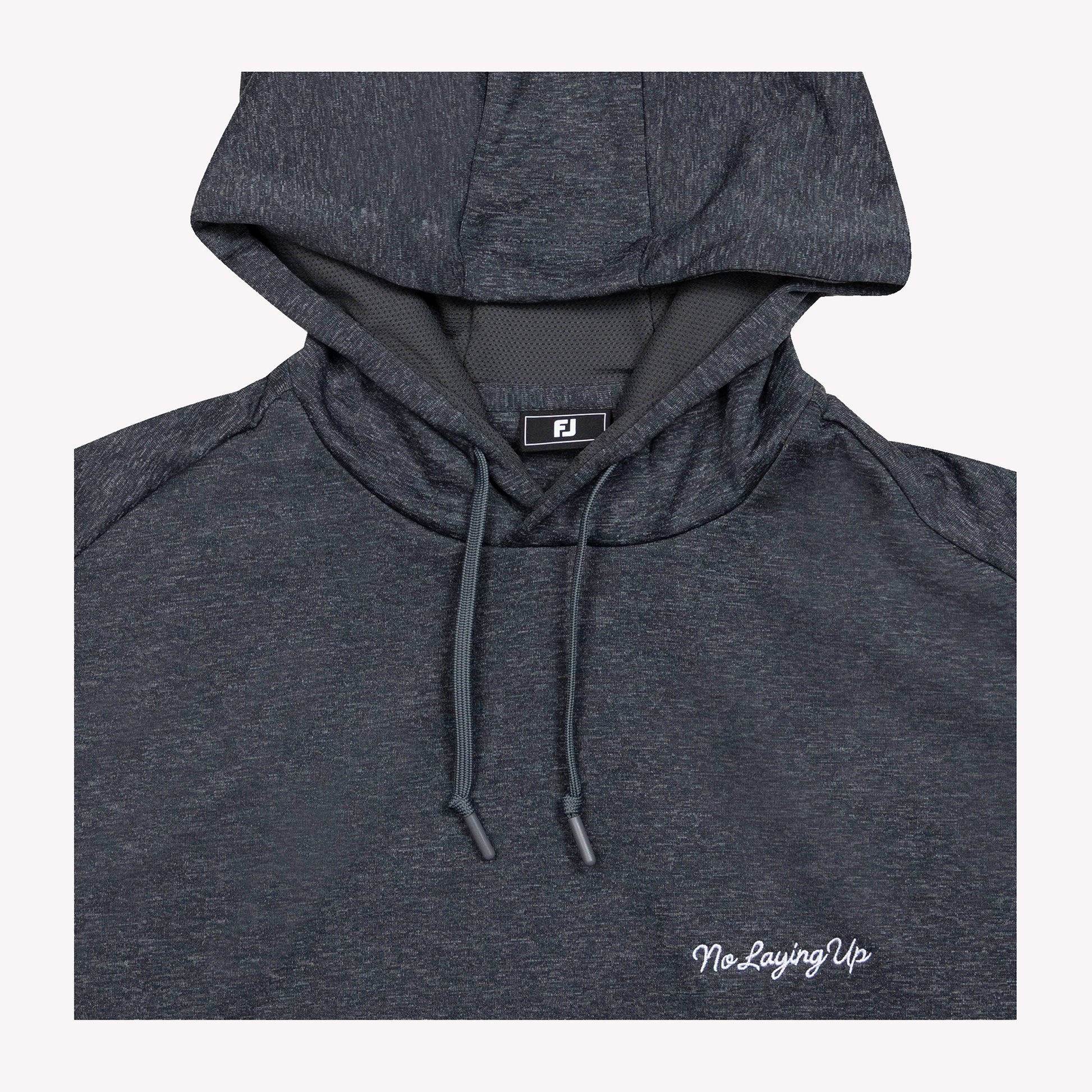 The left chest is adorned with white No Laying Up modern script and there is a small FJ bug tag at the front left hem.