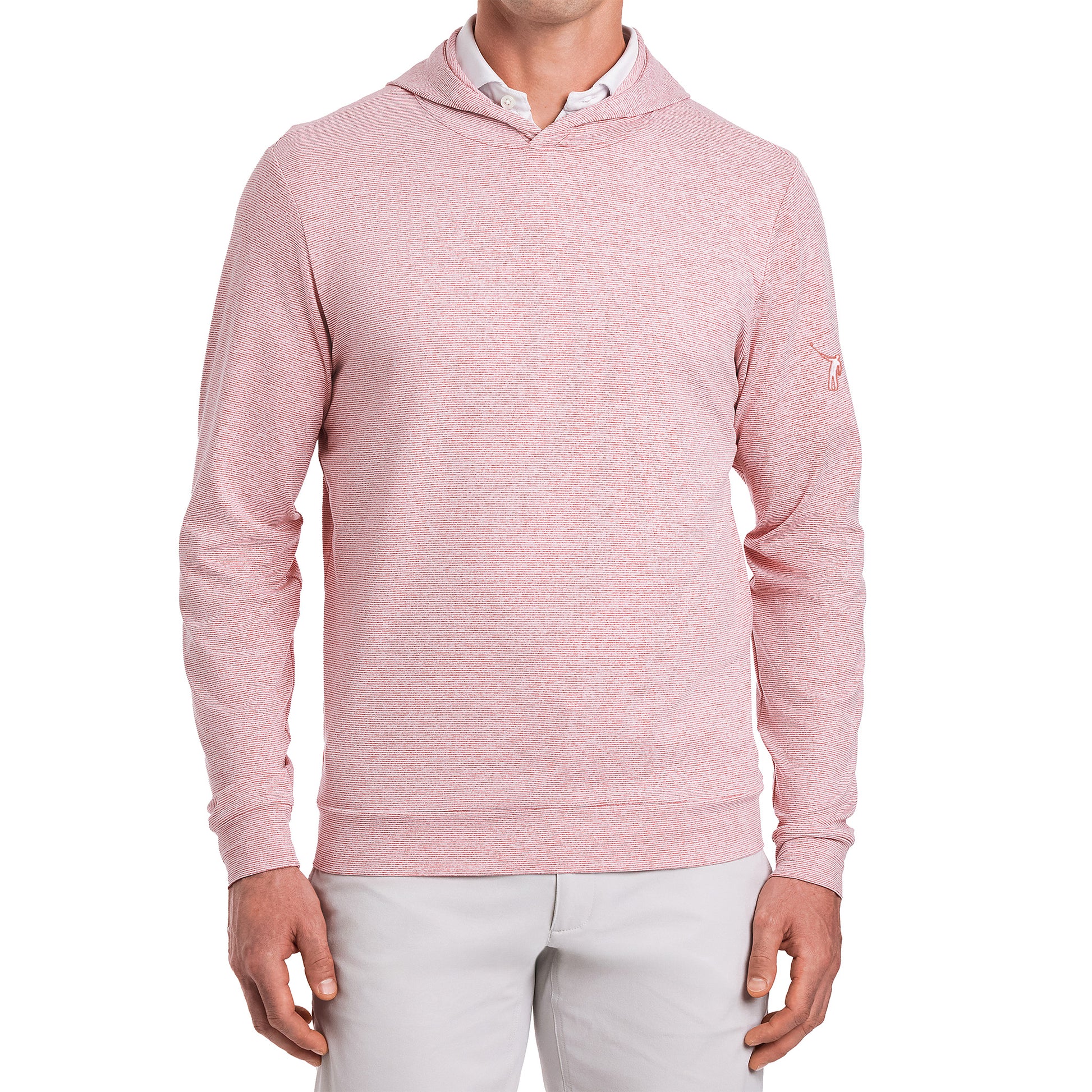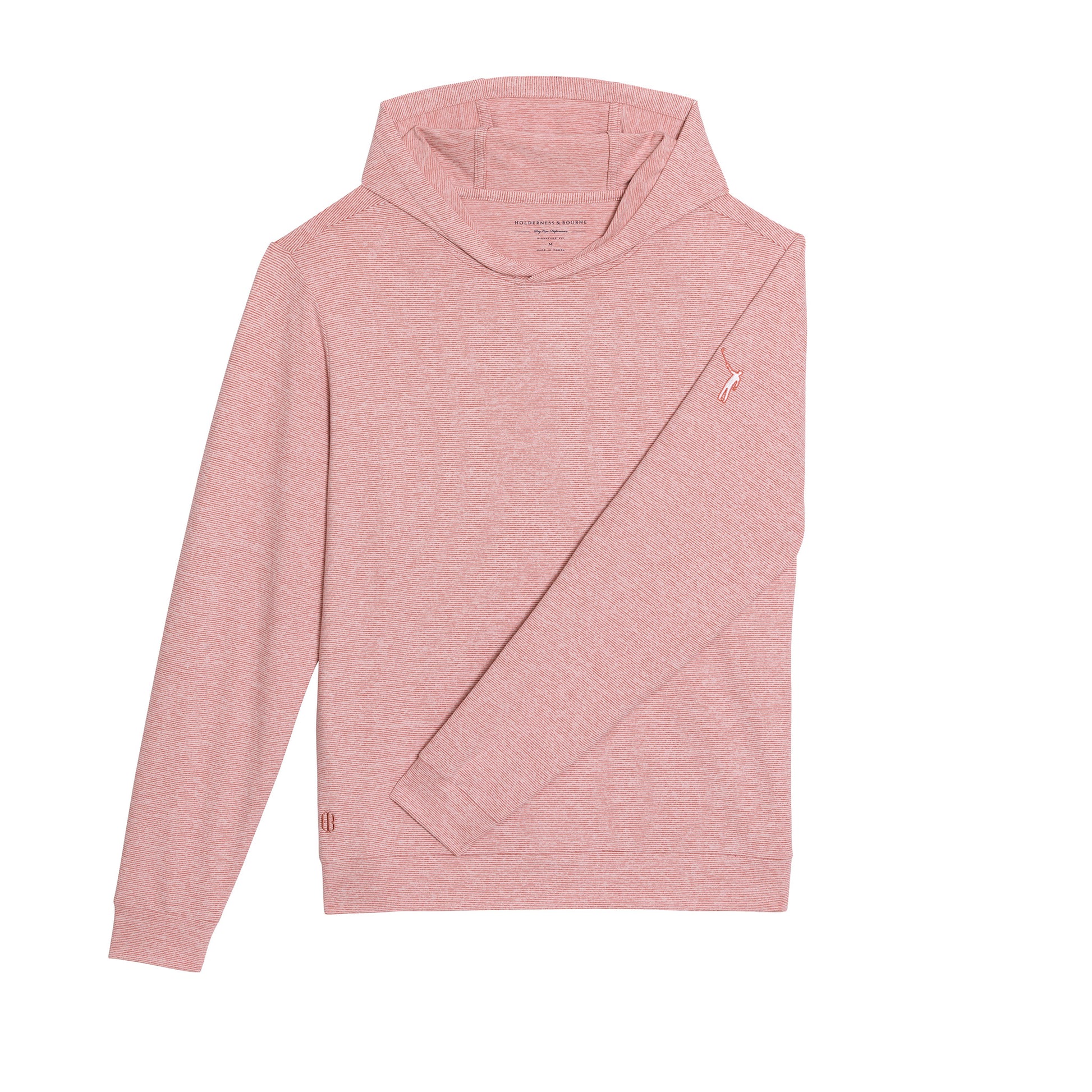 Designed with comfort and versatility in mind, the Hamilton is a technical hoodie that features a subtle heathered stripe pattern. Stay cool and comfortable throughout the day thanks to H&B's lightweight, ultra-soft performance blend fabric with built-in 4-way stretch and UPF 50+ sun protection. The Heathered Cape red and white is perfect for cheering on Team USA at Bethpage this fall with a coordinating red and white Wayward Drive on the left bicep.