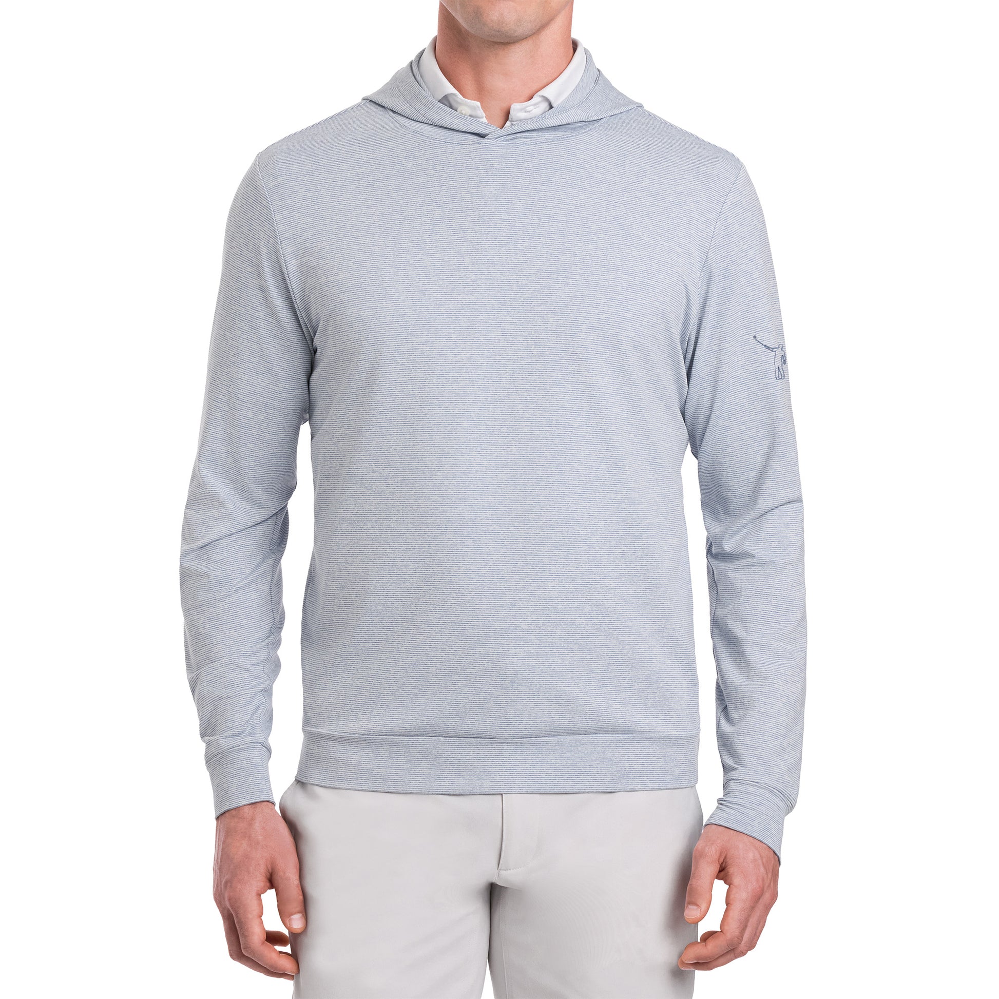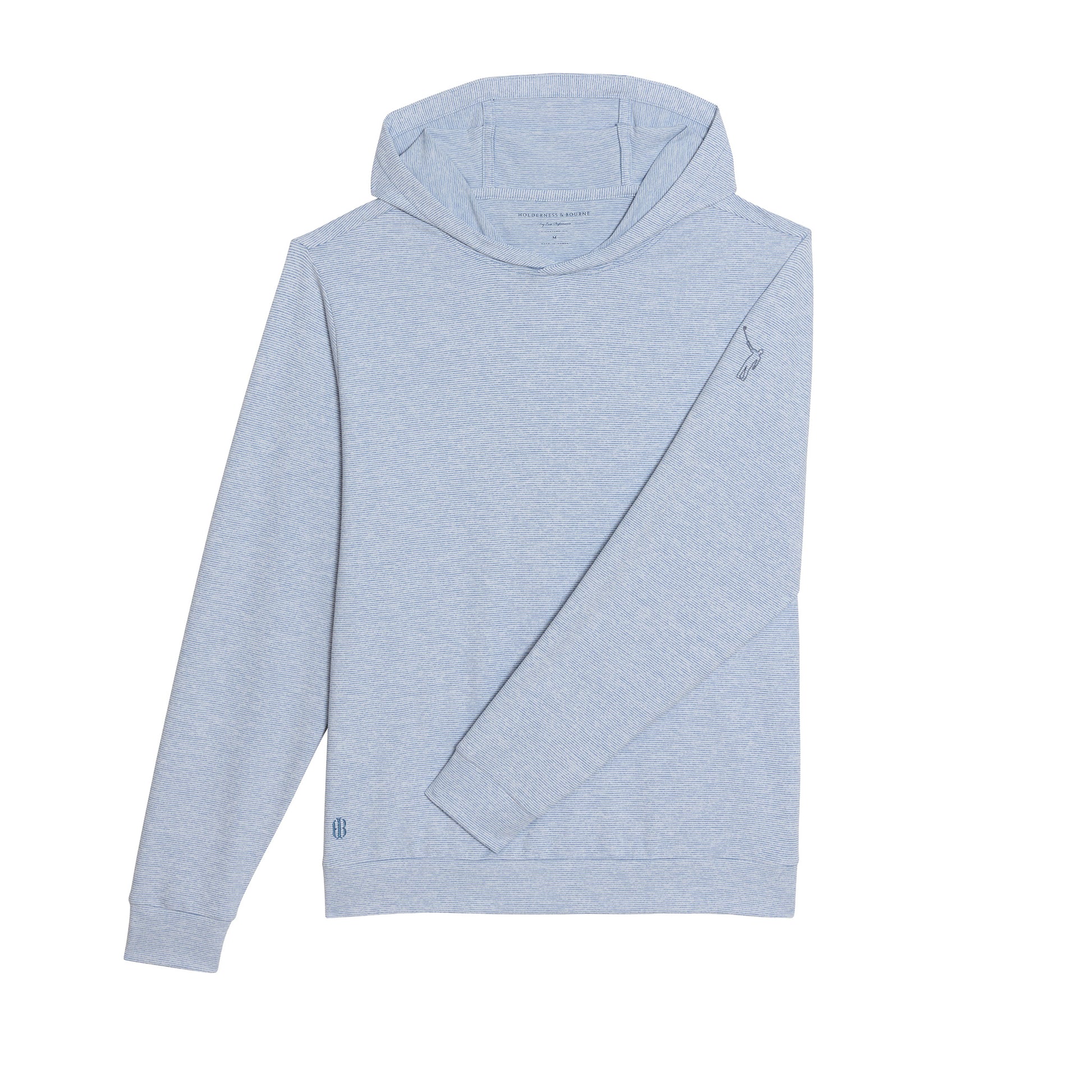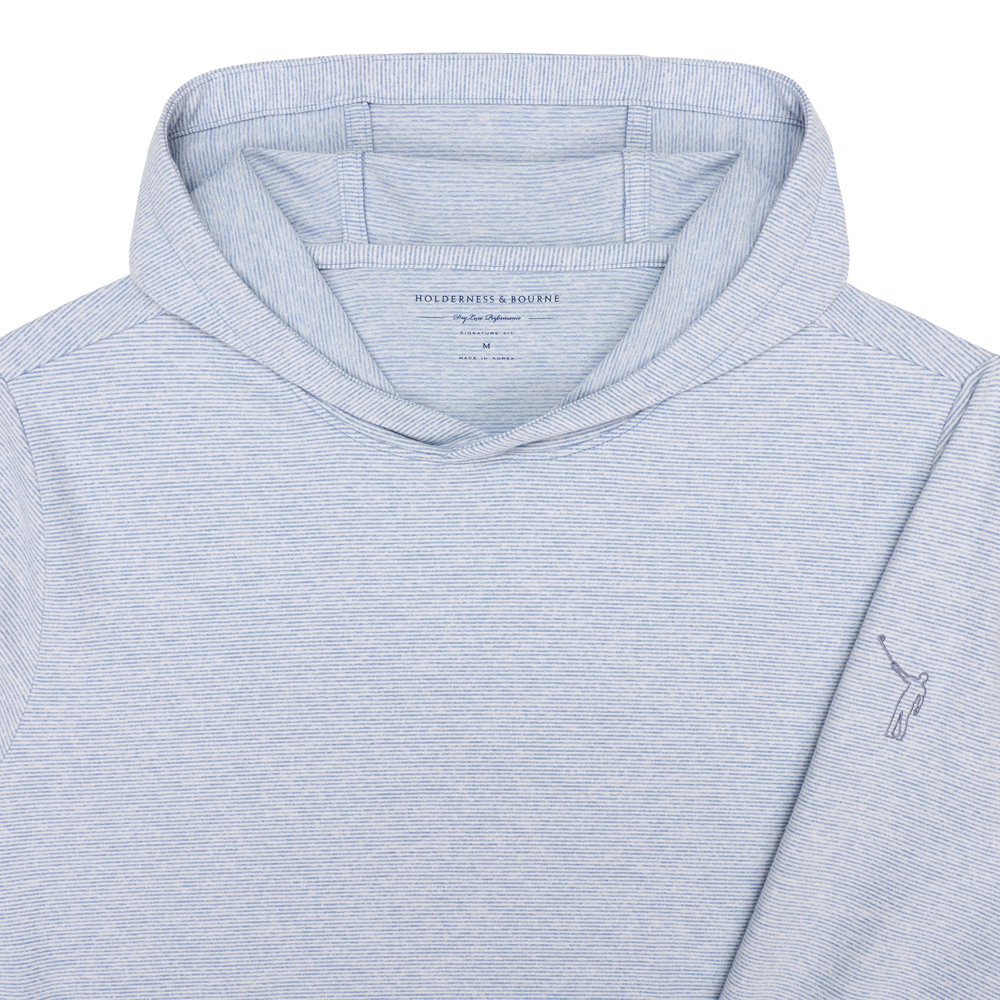 Designed with comfort and versatility in mind, the Hamilton is a technical hoodie that features a subtle heathered stripe pattern. Stay cool and comfortable throughout the day thanks to H&B's lightweight, ultra-soft performance blend fabric with built-in 4-way stretch and UPF 50+ sun protection. The Heathered Bedford blue and white is perfect for cheering on Team Europe at Bethpage this fall with a tonal blue Wayward Drive outline embroidered on the left bicep.