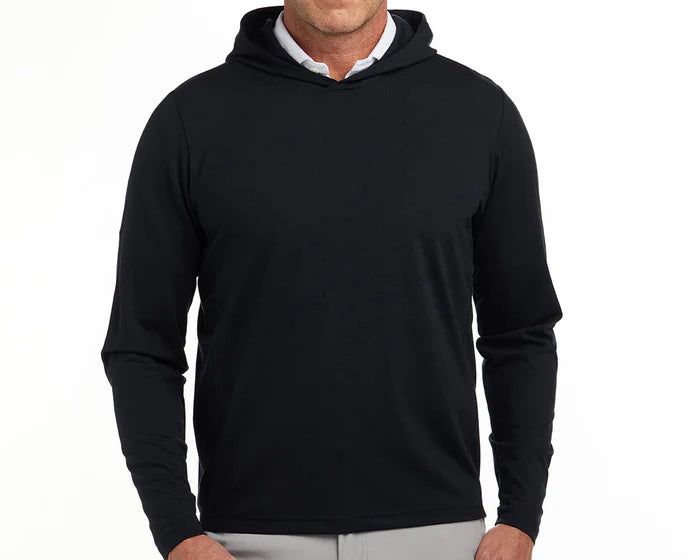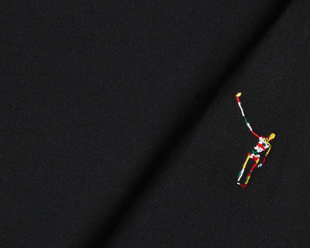 The Jackson is a lightweight performance hoodie cut from one of the softest performance fabrics we have ever developed. Less is more when it comes to golf hoodies. This style is an exceptionally comfortable modern classic featuring a streamlined and stylish design with no extraneous drawstrings or pouches. This version is in black with a yellow, white and red Wayward Skeleton on the left bicep. There's also a tonal HB logo on the right-side panel.