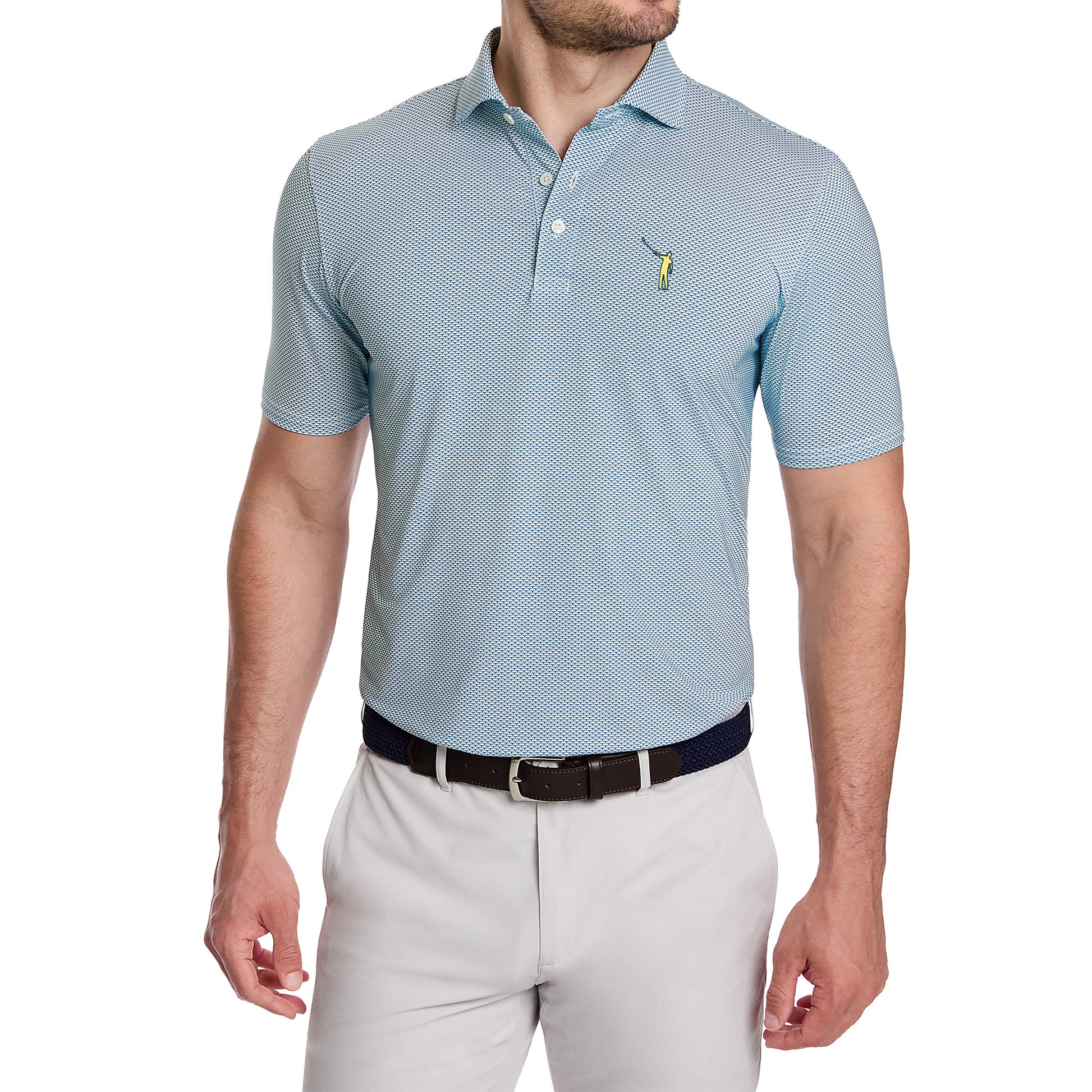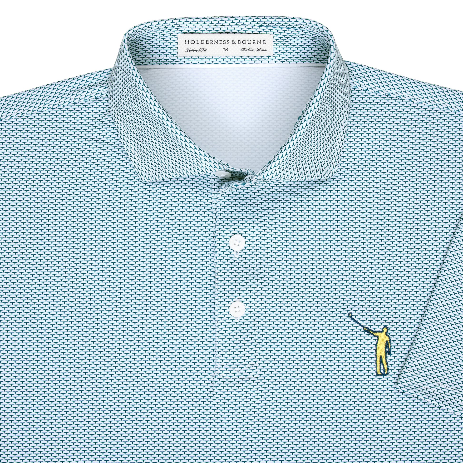 Need to mix up the polo rotation? Bring in the Armfield, a distinctive geometric design laid over a signature H&B polo you already know and love. The Armfield utilizes H&B's best-selling performance jersey fabric, which offers a luxurious hand feel, plenty of stretch, and excellent moisture-wicking in warmer weather. It is finished with H&B's structured spread collar, genuine trocas shell buttons, and signature tailored fit. This polo features a two-toned coordinating Wayward Drive on the left chest.
