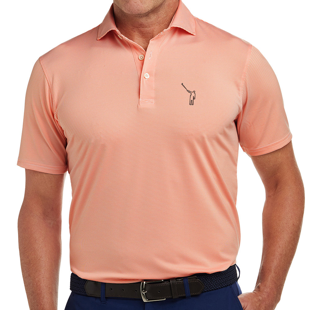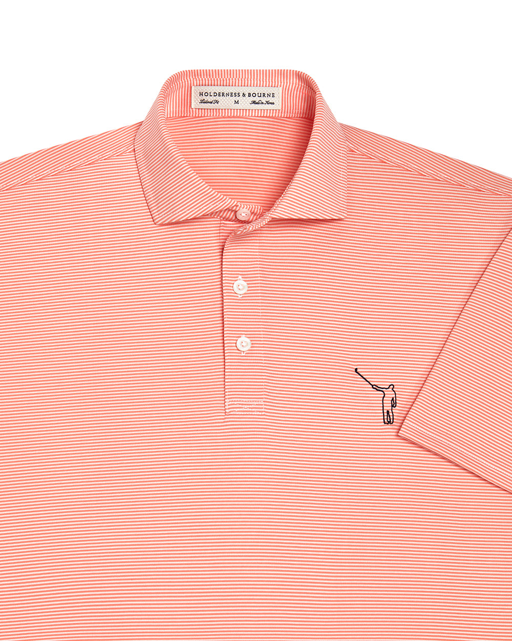 Finished with H&B's signature structured spread collar, genuine trocas shell buttons, and tailored fit, this version features Sunset orange and white stripes accented with our Wayward Drive Outline logo on the chest in navy.