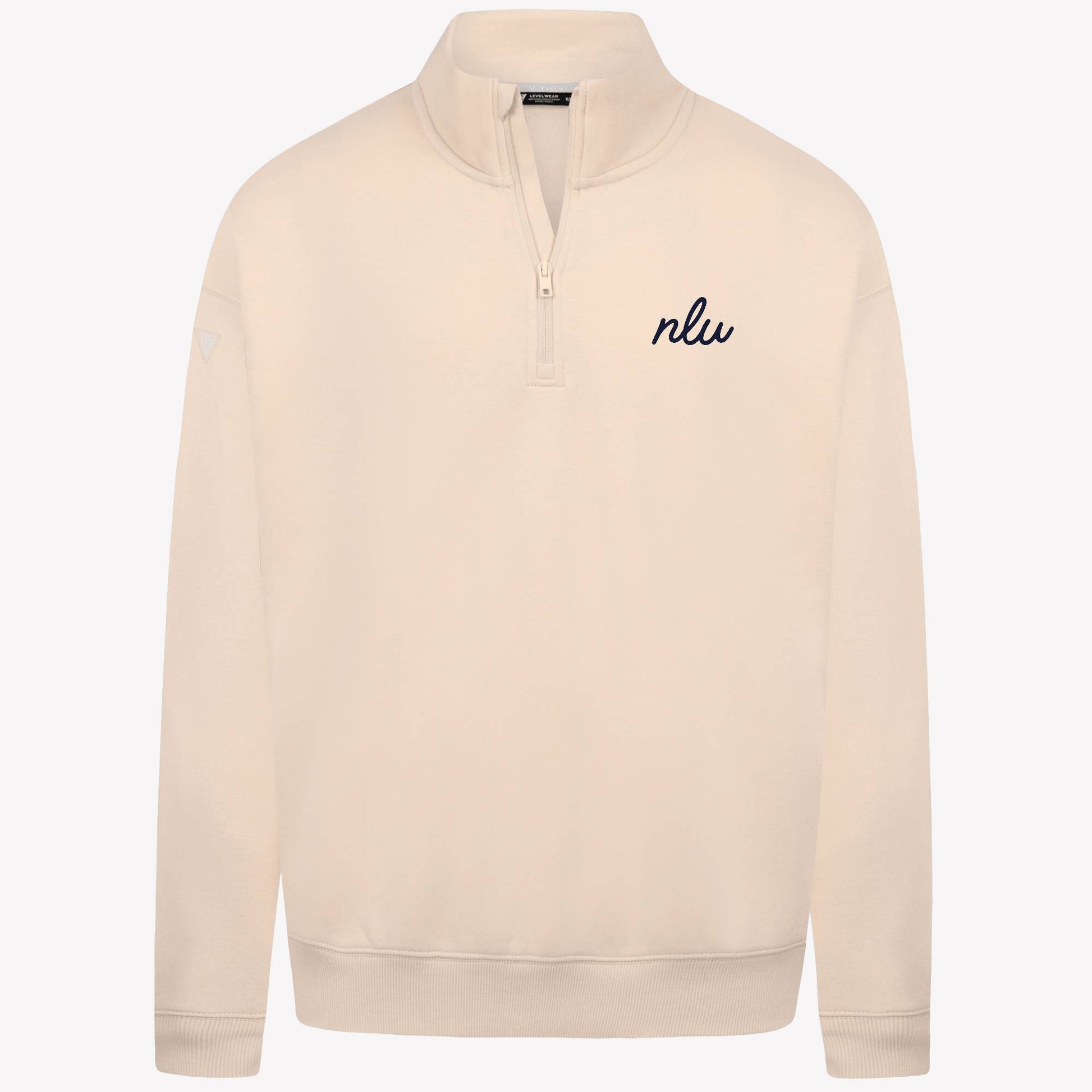 NLU x Levelwear Murray Fleece Quarterzip | Sand w/ Navy Script