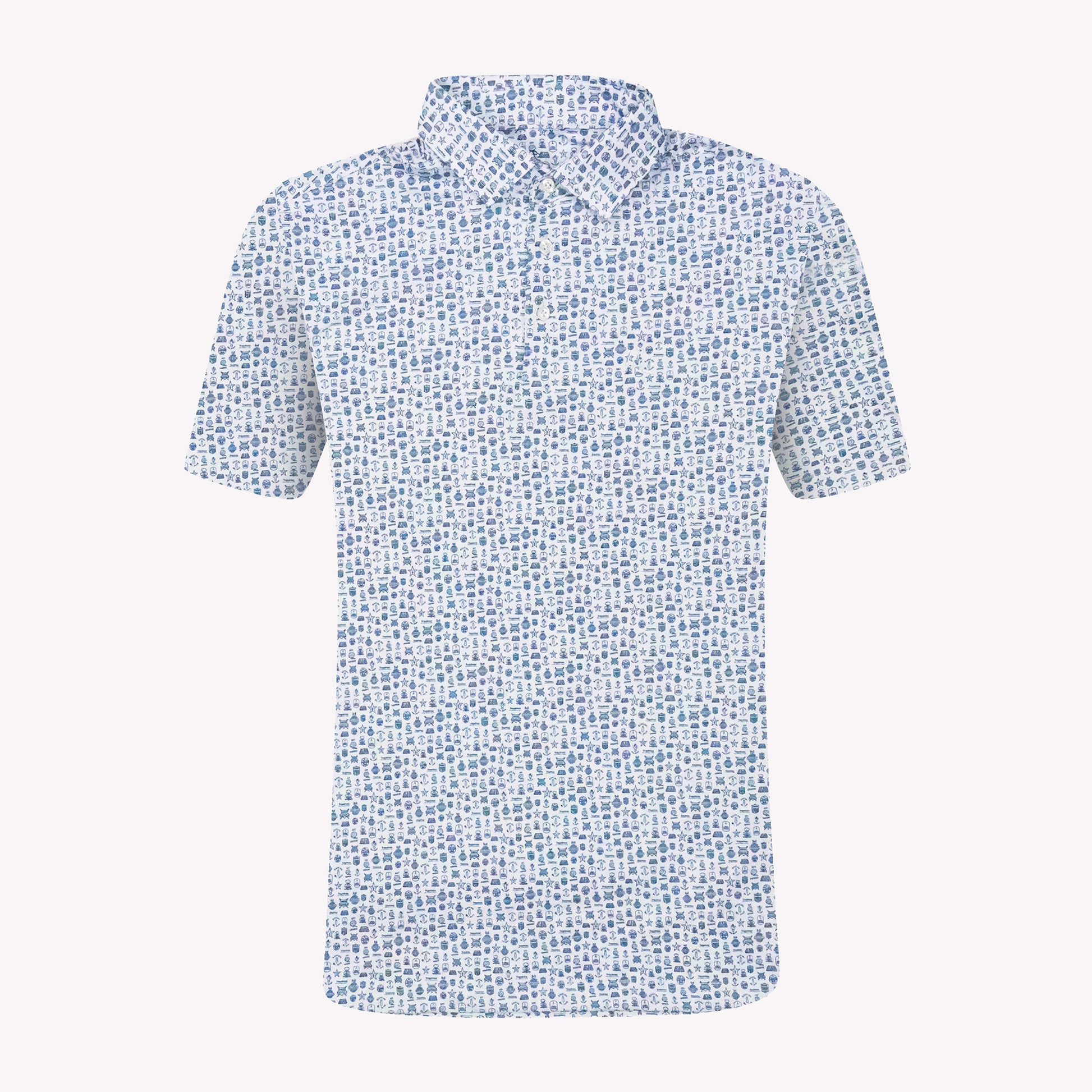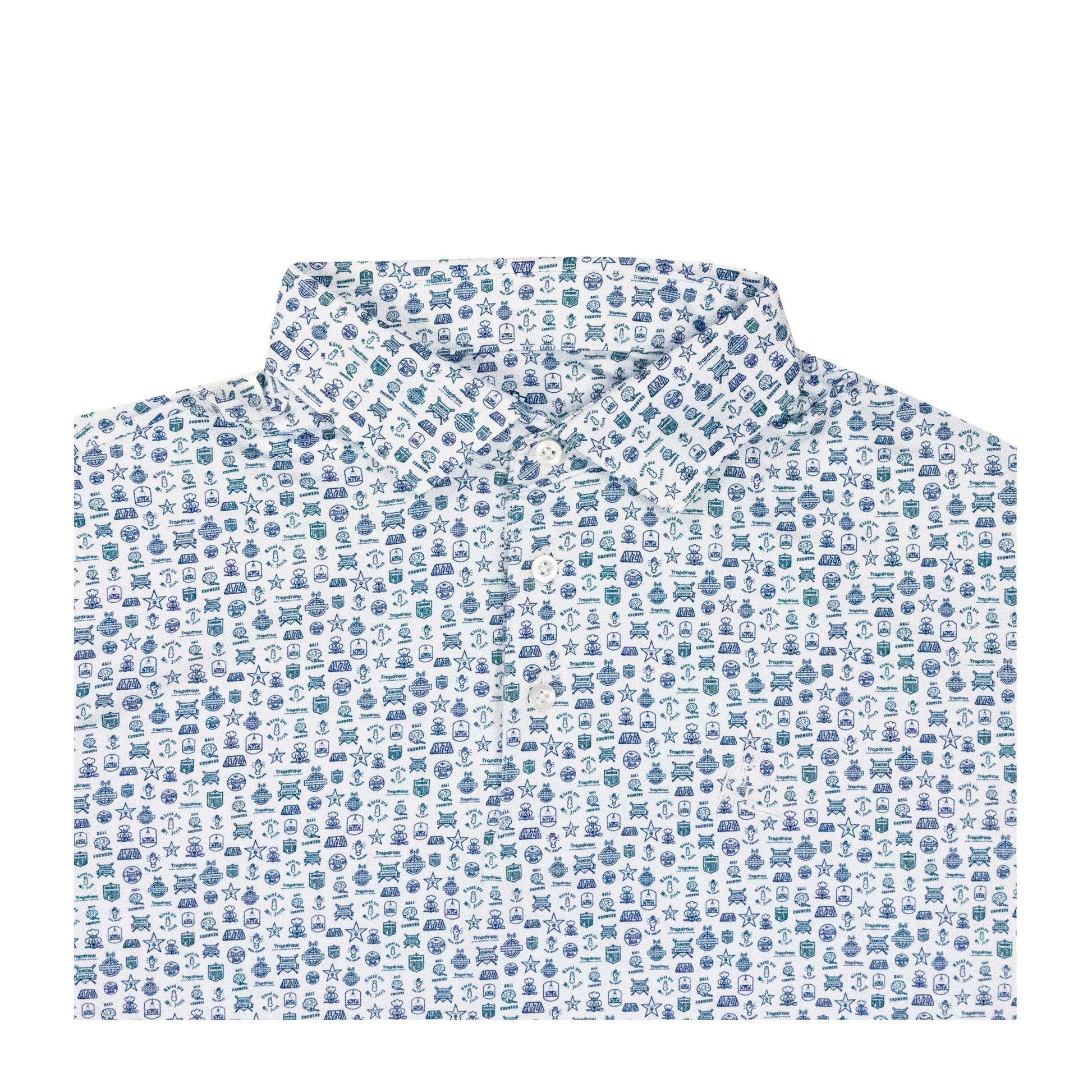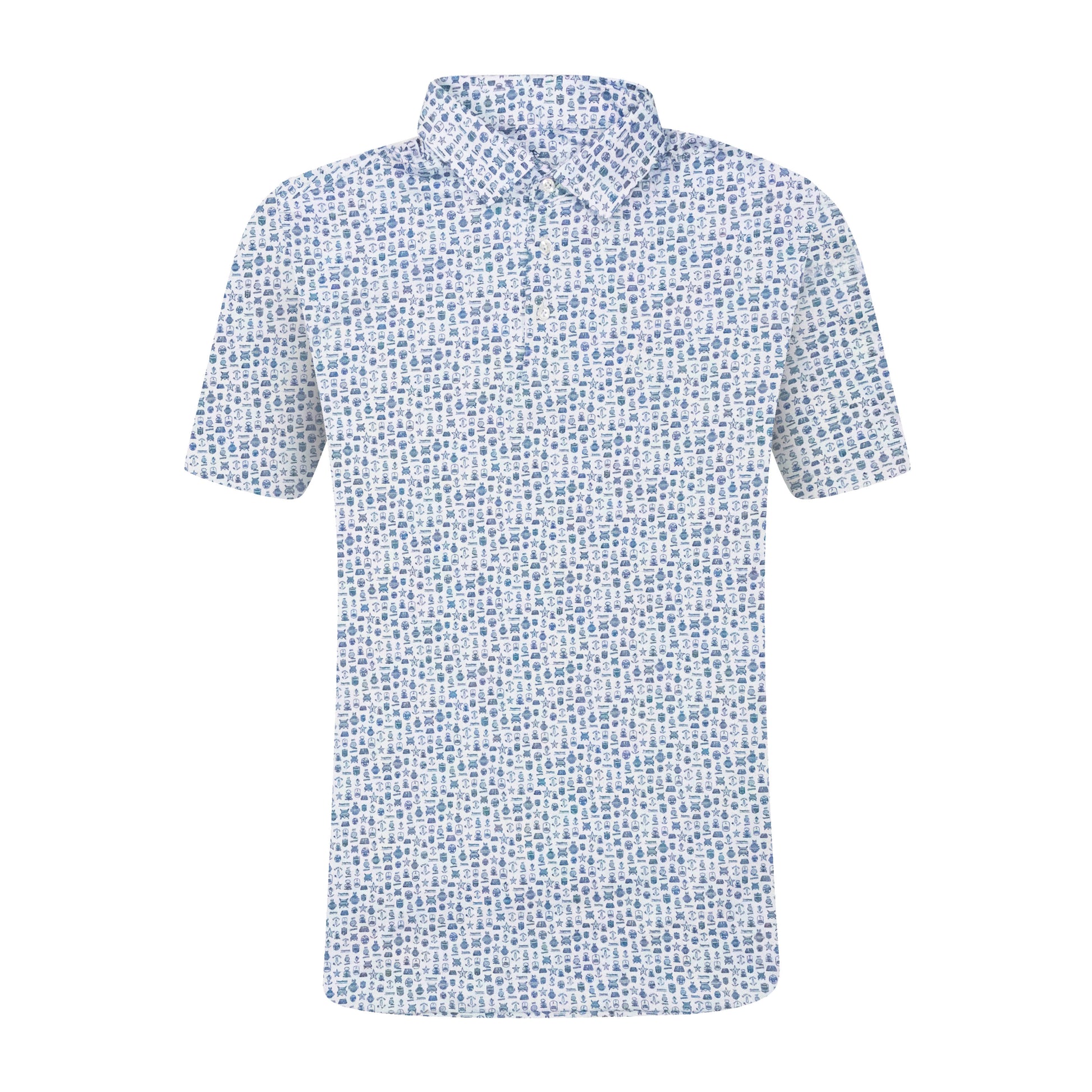 The TrapDraw - it's a bit of everything, and we've made a custom polo with Rhoback to celebrate all things TD! Chop sessions, BallKnowers, logistics, perfect clubs, The Booth, air travel, and more! Rhoback does such a good job at these intricate prints, and we love how this came out. On a white base with navy and dark green TrapDraw icons all over, this polo is sure to be a talking point during your next round.