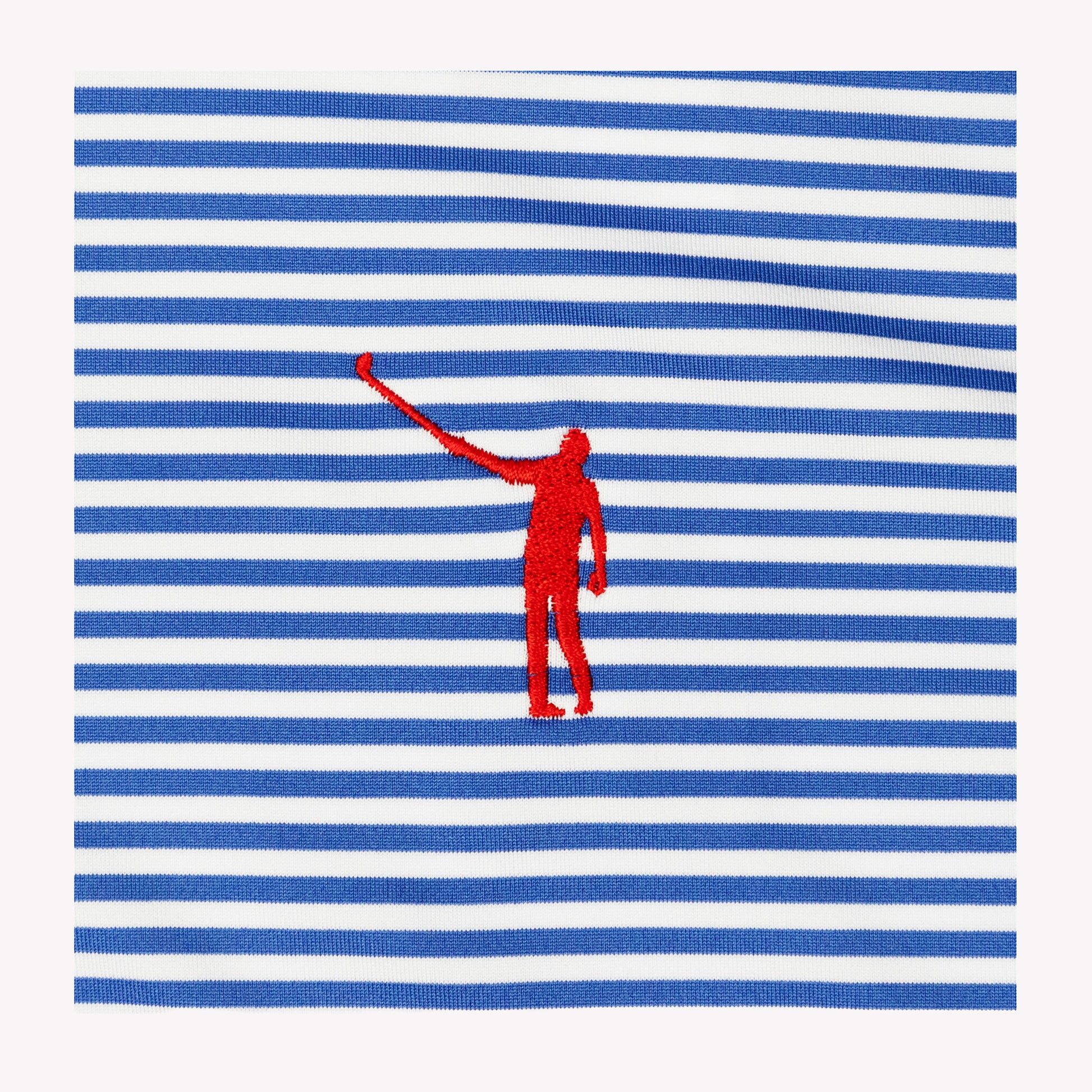 Performance meets style with the incredibly comfortable Rhoback Birdie Stripe Performance Polo. Finished with a red Wayward Drive embroidered on the left chest, this blue & white striped polo is perfect for Memorial Day, July 4th or any other summer festivity. A Rhoback Ridge completes the design details on the back.