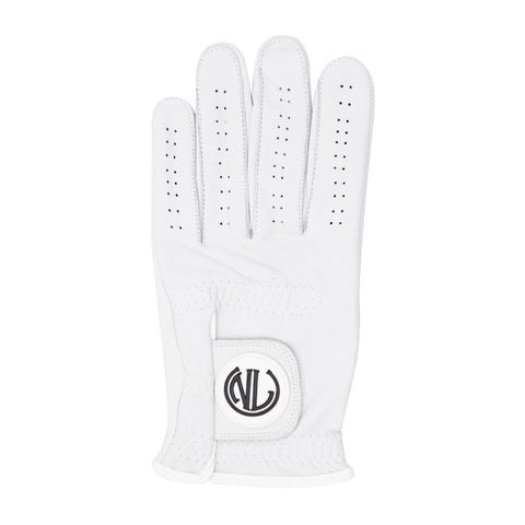 Tour quality cabretta leather golf glove with a black NLU monogram on the strap and Wayward Drive logos scattered on the thumb. These gloves come in five sizes. If you usually wear a Cadet size, consider the medium/large option as the palm and fingers are a bit wider.