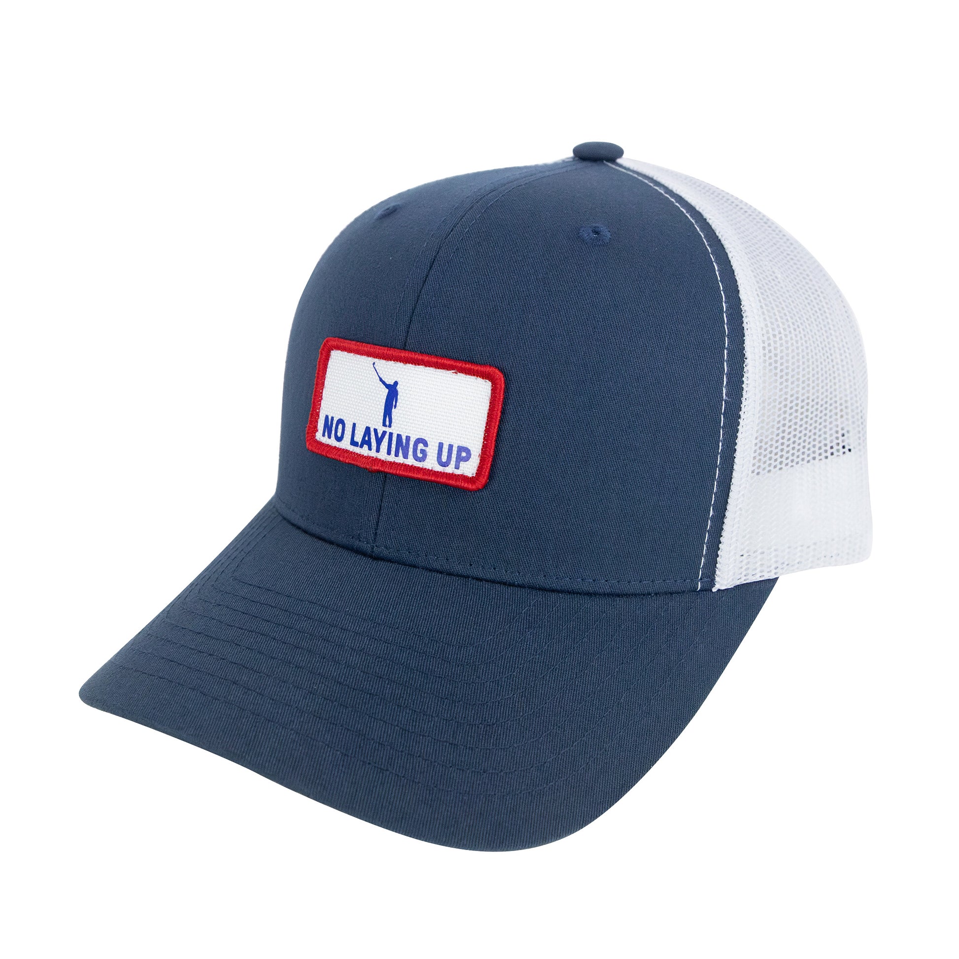 No Laying Up Wayward Patch Trucker Hat | Navy/White w/ Red, White, & Blue Patch