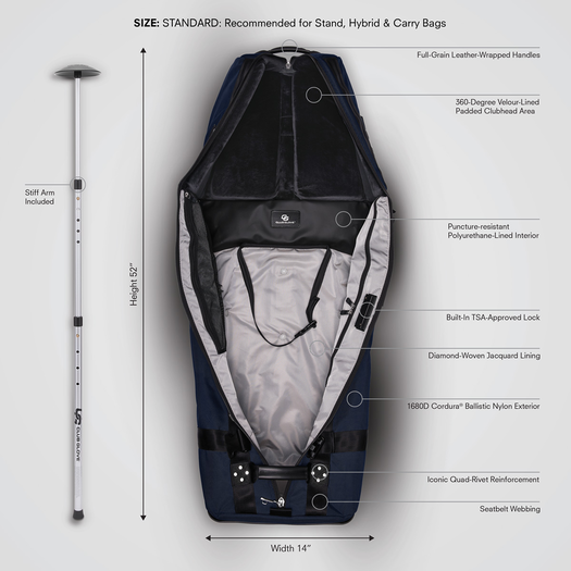 - Stiff Arm Included - built to protect your drivers and woods from compression